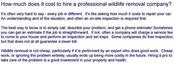 © 2003-2011     Website content & photos by Trapper David     Email questions: david@wildlife-removal.com